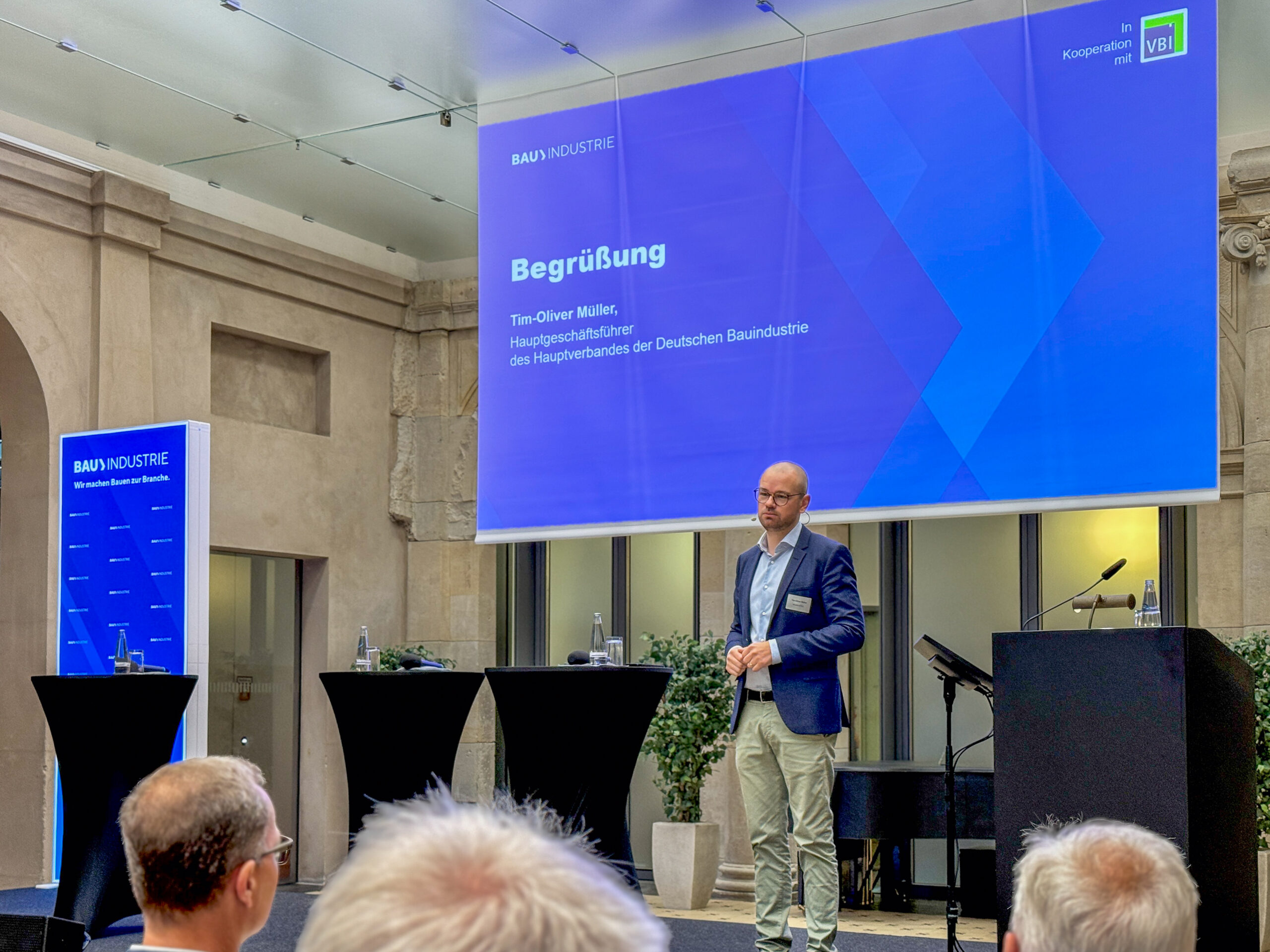 Aus diesem Grund haben der Hauptverband der Deutschen Bauindustrie und der VBI am 3. Juli zu einem Industrietag in Berlin eingeladen, der Auftraggeber mit Planenden und Ausführenden aus der Baubranche zusammenbrachte. Das große Interesse spiegelte sich in einem vollen Saal wider. Vertreterinnen und Vertreter der beteiligten Behörden nutzten die Gelegenheit, ihren Bedarf, Pläne und Ziele transparent darzulegen und erläuterten detailliert die Abläufe bei Ausschreibungen, Vergaben und der Durchführung der Bauvorhaben.