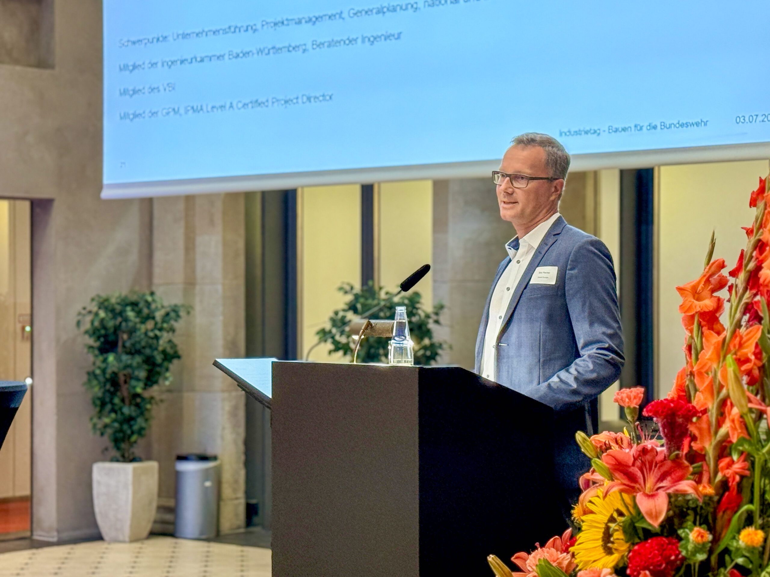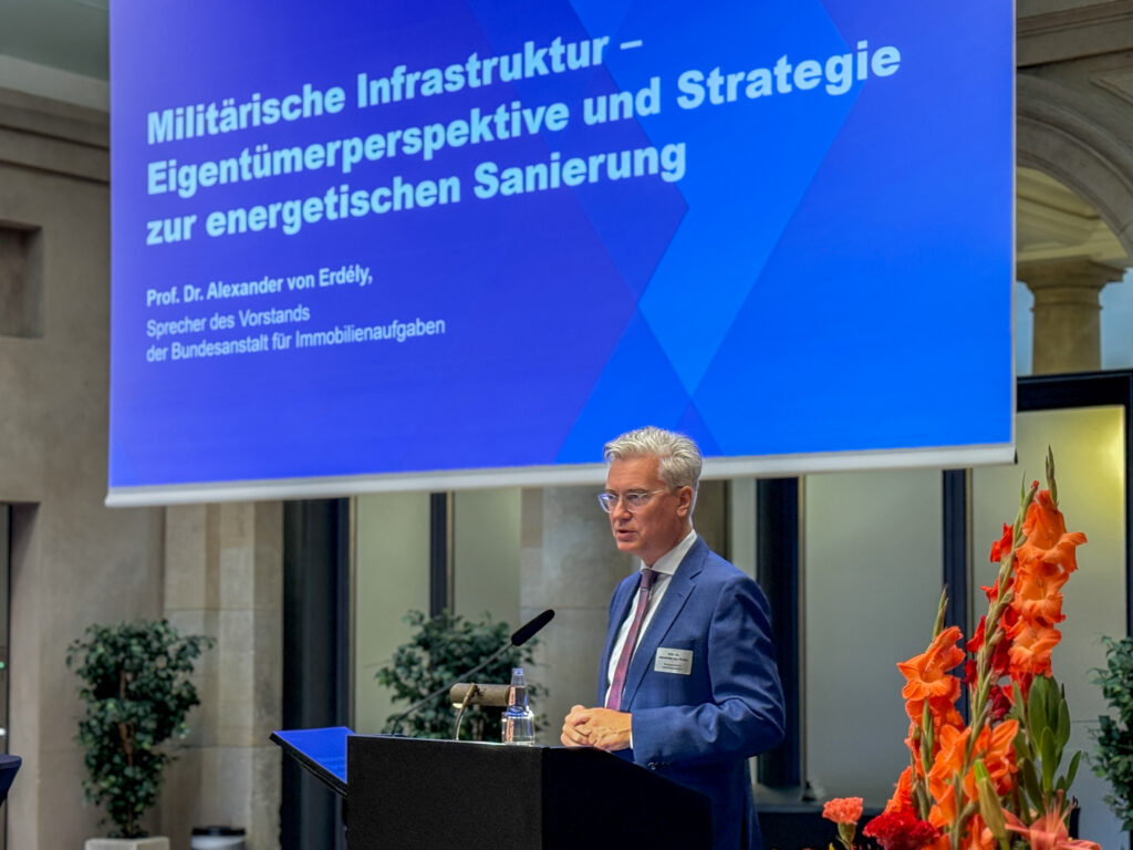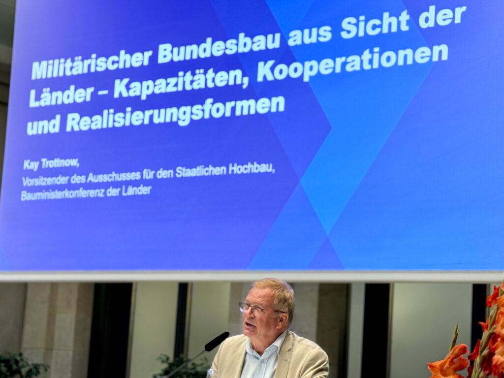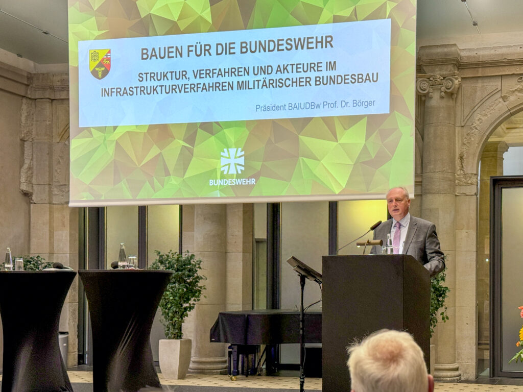 Zu Beginn der Veranstaltung benannte Dr. Alexander Götz, Ministerialdirektor im Bundesverteidigungsministerium (BMVg), ein Investitionsvolumen von 65 Milliarden Euro für die Infrastruktur der Bundeswehr. Zusätzlich müsse der Aufbau der Streitkräfte berücksichtigt werden.