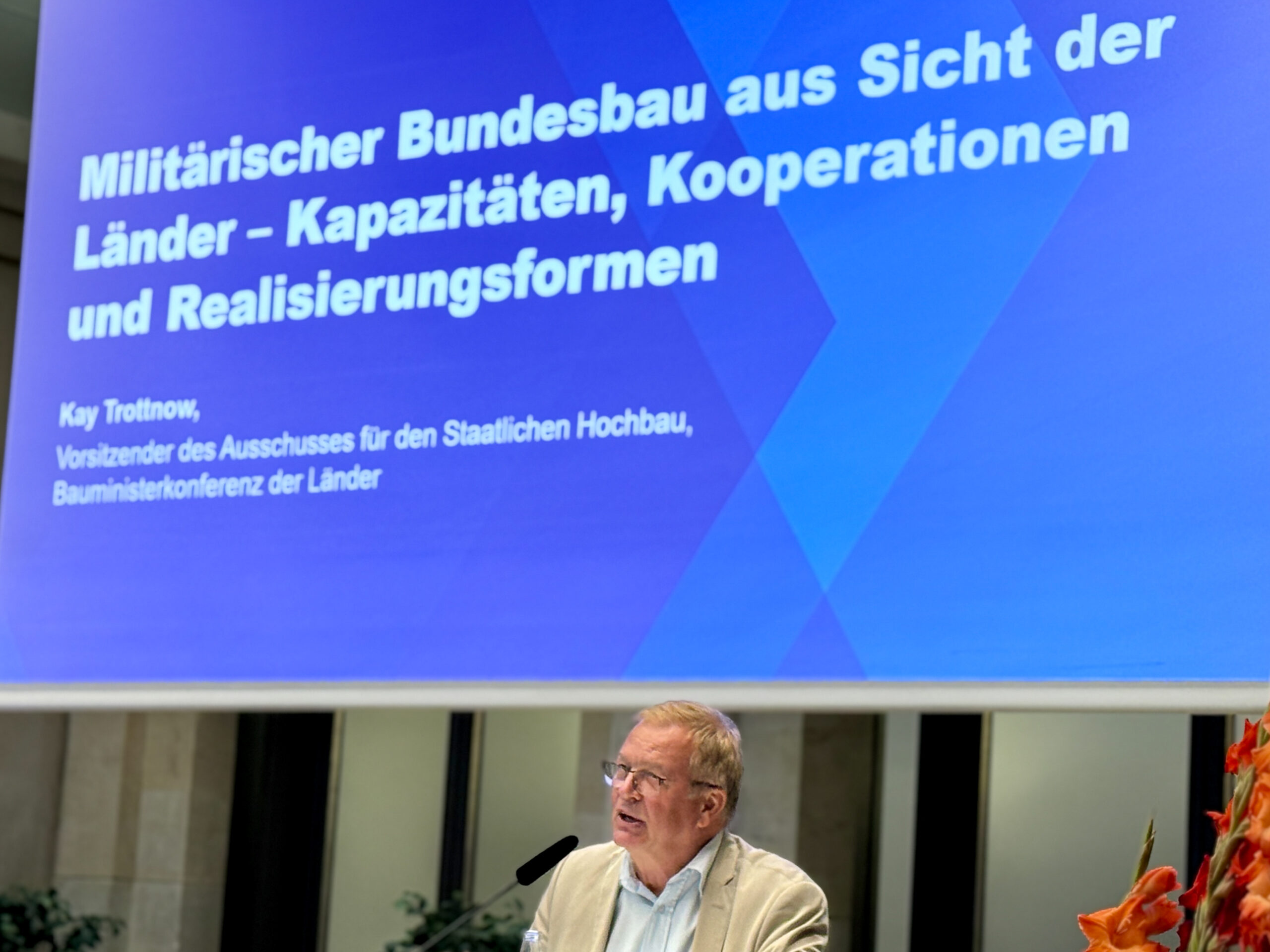 Vertreter des Geschäftsbereichs BMVg, die Bundesanstalt für Immobilienaufgaben sowie der Vorsitzende des Ausschusses für Staatlichen Hochbau zeigten auf, welche Maßnahmen bereits ergriffen wurden, um die umfangreichen Bauaufgaben zu bewältigen. Gleichzeitig luden sie die Planungs- und Baubranche ein, mit ihrem Fachwissen und ihrer Erfahrung aktiv mitzuwirken.