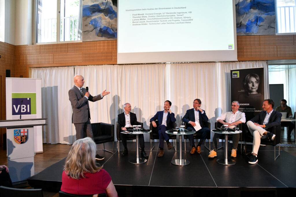 Nach einem Impulsvortrag von Bastian Holst von der Bundesnetzagentur ging es mit Vertretern von Planungs- und Bauunternehmen sowie Netzbetreibern auf dem Podium in medias res. Die Panel-Teilnehmer waren Fred Wendt von ILF Consulting Engineers, Thorsten Dietz von TenneT, Lorenz Müller von 50Hertz Transmission GmbH und Karl Jelinski von Leonhard Weiss GmbH & Co. KG. Der offene Austausch über Probleme und Lösungsansätze inspirierte das Fachpublikum zum lebhaften Mitdiskutieren. Moderiert von VBI-Referent Dr. Clemens Kremer zeigte die Diskussion, wie wertvoll der direkte Austausch aller Beteiligten für einen reibungslosen und zügigen Trassenausbau für die Branche ist. Es bestand weitgehend Einigkeit darüber, dass nur mit partnerschaftlicher Zusammenarbeit und Kommunikation auf Augenhöhe aller Beteiligten die ambitionierten Ziele von 210 Großprojekten und 16.800 Leitungskilometern bis 2045 erreicht werden können.