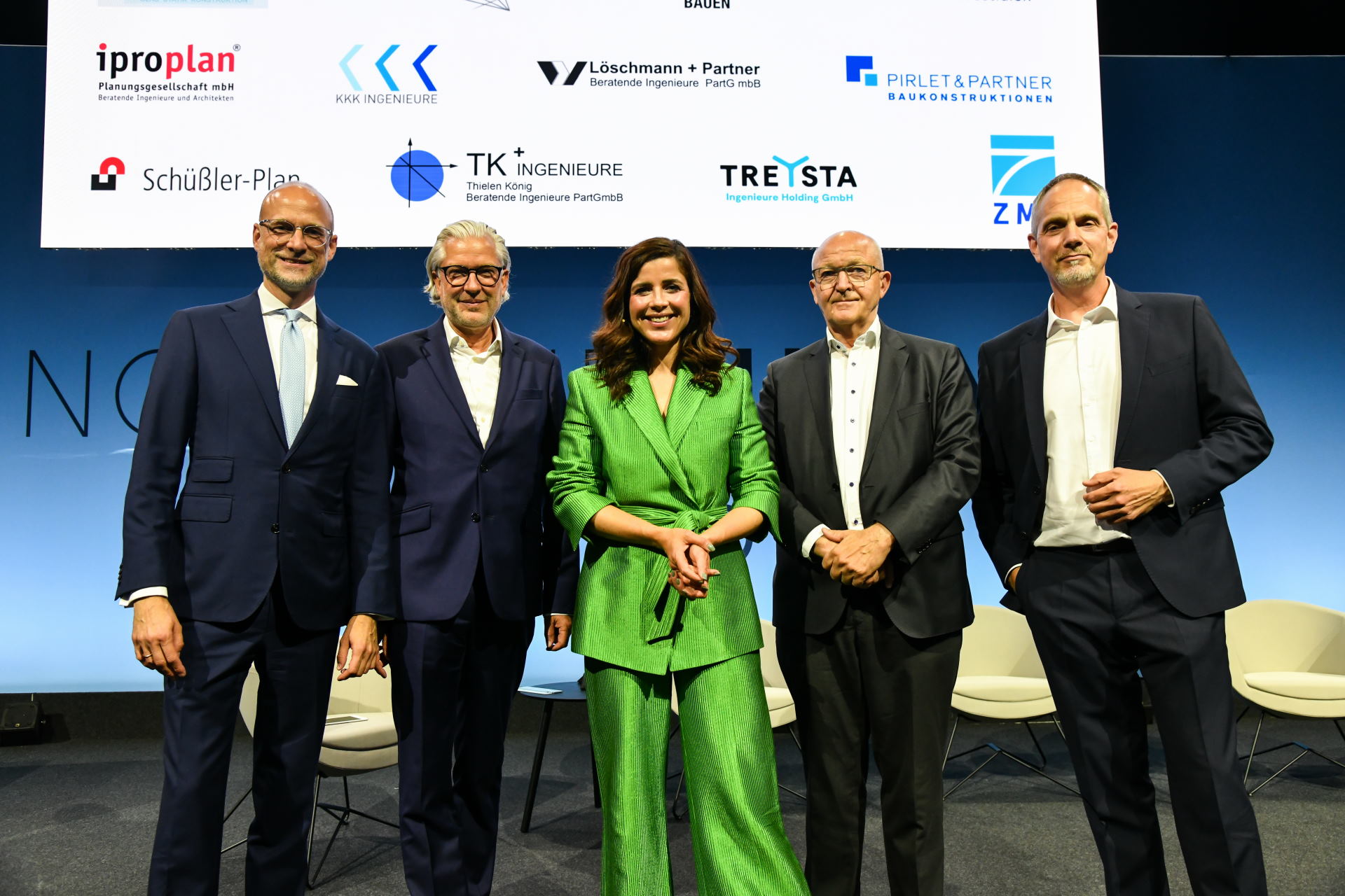 Im Berliner Gasometer diskutierten Expertinnen und Experten aus Ingenieurbüros, Behörden, Bauwirtschaft, Forschung und Politik über die Herausforderungen der kommenden Jahre. Im Zentrum: die Frage, wie Planung effizienter, nachhaltiger und digitaler gestaltet werden kann. Die Moderation übernahm Journalistin und Moderatorin Eva-Maria Lemke.