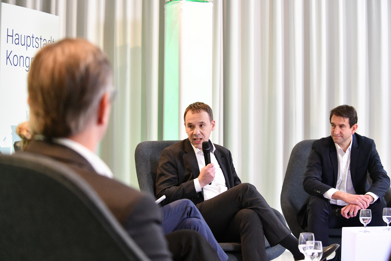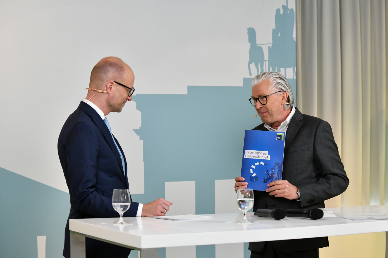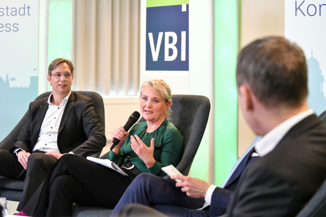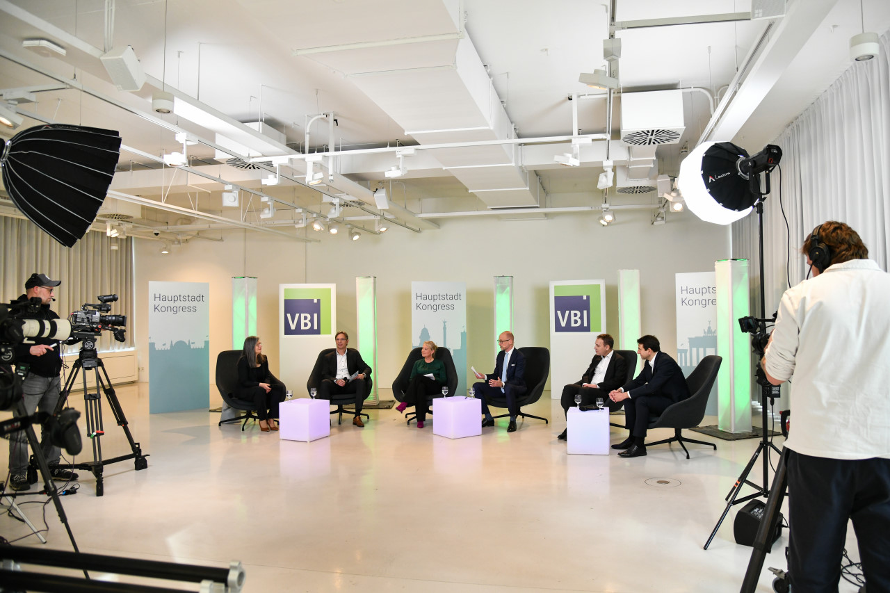 Die Themen Energieversorgung, Wohnungsbau und Nachhaltigkeit standen im Mittelpunkt des diesjährigen VBI-Hauptstadtkongress. VBI-Präsident Jörg Thiele begrüßte gemeinsam mit VBI-Hauptgeschäftsführer Sascha Steuer Experten aus Politik, Wirtschaft und Verbänden als Gesprächspartner.