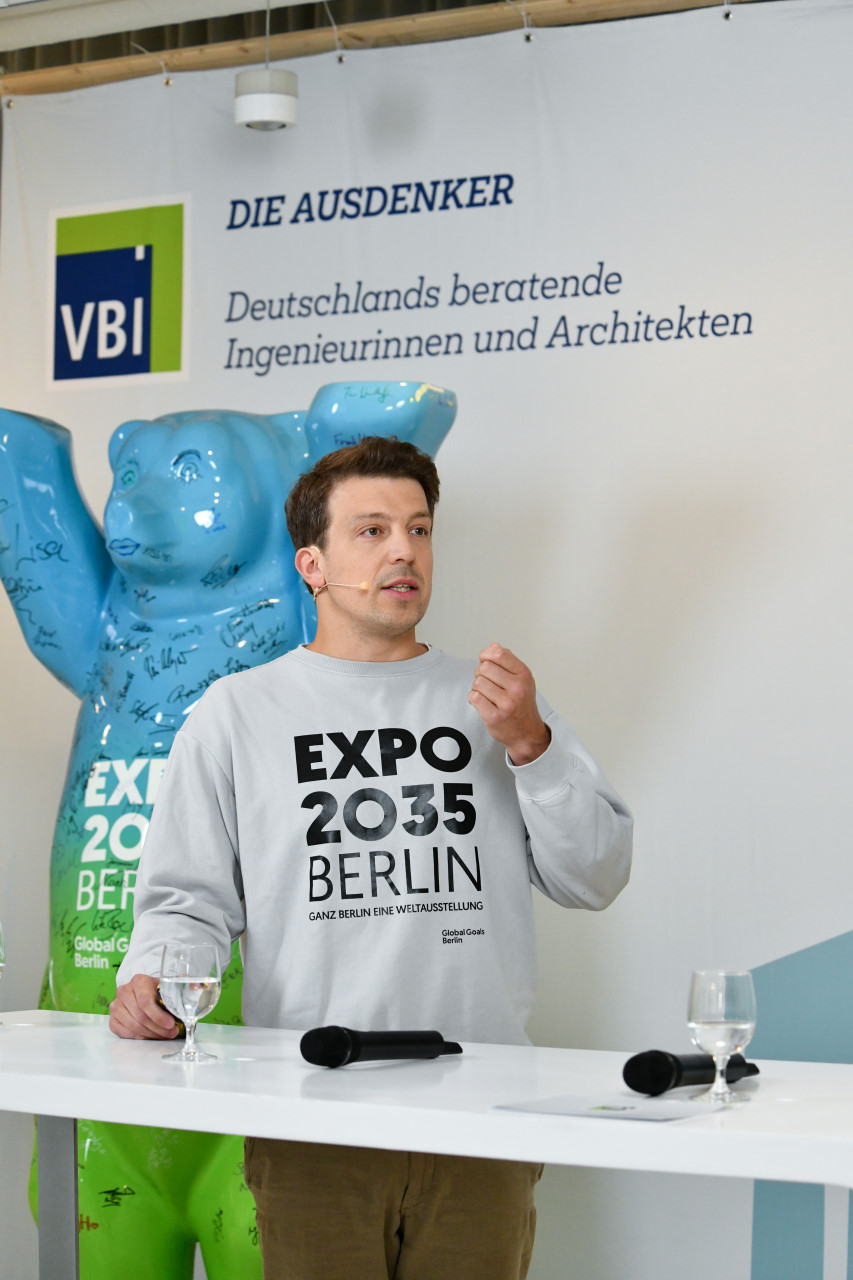 Daniel-Jan Girl, Vorsitzender von Global Goals für Berlin e. V., hielt einen inspirierenden Vortrag zur Bewerbung Berlins für die Weltausstellung Expo 2035. Die letzte Expo fand in Dubai statt (2020), die nächste ist in Japan geplant. Bereits in zwei Jahren fällt die Entscheidung fürs Austragungsjahr 2035. Laut Girl, der größte Unterschied zu den bisherigen Expos ist (auch zu Hannover im Jahr 2000): Statt einer zentralen Fläche mit Pavillons von 150 Nationen, soll eine dezentrale Expo entstehen mit vielen innovativen Ideen und ingenieurtechnischen Lösungen, die anwendungsfähig sind und damit ganz Berlin zu einer Weltausstellung machen.