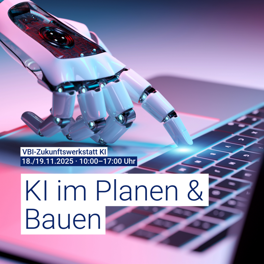 Der Auftakt-Workshop wird mit identischen Inhalten an zwei Terminen angeboten – wählen Sie den Termin, der für Sie am besten passt. Die Teilnehmerzahl ist auf 25 Personen pro Workshop begrenzt. Im Fokus stehen praxisnahe Einblicke in die Einsatzmöglichkeiten von KI in der Planungs- und Baubranche. Mitglieder, die darin Potenziale für ihr eigenes Unternehmen erkennen, können diese in einem zweiten Schritt gezielt weiterentwickeln – und schaffen sich so eine fundierte Grundlage für nächste Entscheidungen. 2026 wird die Reihe mit einer Folgeveranstaltung fortgesetzt, bei der die erarbeiteten Ansätze vertieft und weiterentwickelt werden.
